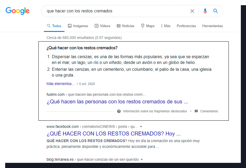 Como resultado de esta labor, 12 de los artículos realizados se encuentran en la primera página del SERP de Google.